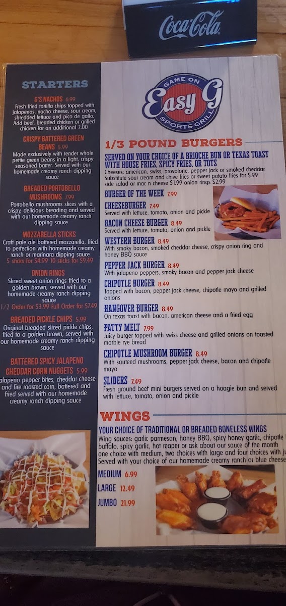 With ice-cold beer and friendly service, Easy G Sports Grill is the perfect spot for game day or a casual dinner. Don’t miss out on the culinary delights and the welcoming atmosphere on your next visit!